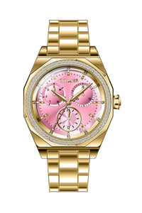 INVICTA Angel Lady 38mm Stainless Steel Gold Pink dial VH68 Quartz , Band Material: Stainless Steel, Band Tone: Gold, Band Size [mm]: 18, Band Length [mm]: 190, Buckle Type: Fold over safety , Crown Type : Push, Case Material : Stainless Steel, Case Tone : Gold, Case Size (mm) : 38, Case Back : Solid, Material of Hands : Metal, Color of Hands : Gold, Crystal Type : Flame Fusion, Bezel Material : Stainless Steel,Diamond, Dial Material : Metal, Dial Color : Pink .Purchasing these parts and having a non-authorized repair center open your watch voids all manufacturing warranties. Invicta cannot guarantee the quality standards of an altered timepiece, the standard 3-year limited warranty on Invicta timepieces shall be invalid if the timepiece is serviced at any time by an unauthorized repair center. This includes battery replacements, which must be done at an Invicta authorized repair center in order to maintain the eligibility of the warranty. Please follow the link below to learn more about Invicta's warranty.https://cdn.invictawatch.com/www/files/invicta-warranty-2018.pdf