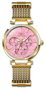 INVICTA Angel Lady 36mm Stainless Steel Gold Pink dial VH63 Quartz , Band Material: Stainless Steel,Cable, Band Tone: Gold, Band Size [mm]: 18, Band Length [mm]: 170, Buckle Type: Fold over push button , Crown Type : Push, Case Material : Stainless Steel, Case Tone : Gold, Case Size (mm) : 36, Case Back : Solid, Material of Hands : Metal, Color of Hands : Gold, Crystal Type : Flame Fusion, Bezel Material : Stainless Steel,Crystal, Dial Material : Metal, Dial Color : Pink, Dial Pattern : Textured Pattern .Purchasing these parts and having a non-authorized repair center open your watch voids all manufacturing warranties. Invicta cannot guarantee the quality standards of an altered timepiece, the standard 3-year limited warranty on Invicta timepieces shall be invalid if the timepiece is serviced at any time by an unauthorized repair center. This includes battery replacements, which must be done at an Invicta authorized repair center in order to maintain the eligibility of the warranty. Please follow the link below to learn more about Invicta's warranty.https://cdn.invictawatch.com/www/files/invicta-warranty-2018.pdf