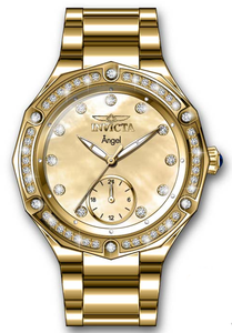 INVICTA Angel Lady 35mm Stainless Steel Gold Champagne dial VH60 Quartz , Band Material: Stainless Steel, Band Tone: Gold, Band Size [mm]: 18, Band Length [mm]: 175, Buckle Type: Fold over push button , Crown Type : Push, Case Material : Stainless Steel, Case Tone : Gold, Case Size (mm) : 35, Case Back : Solid, Material of Hands : Metal, Color of Hands : White,Gold, Crystal Type : Flame Fusion, Bezel Material : Stainless Steel, Dial Material : Mother of Pearl, Dial Color : Champagne .Purchasing these parts and having a non-authorized repair center open your watch voids all manufacturing warranties. Invicta cannot guarantee the quality standards of an altered timepiece, the standard 3-year limited warranty on Invicta timepieces shall be invalid if the timepiece is serviced at any time by an unauthorized repair center. This includes battery replacements, which must be done at an Invicta authorized repair center in order to maintain the eligibility of the warranty. Please follow the link below to learn more about Invicta's warranty.https://cdn.invictawatch.com/www/files/invicta-warranty-2018.pdf