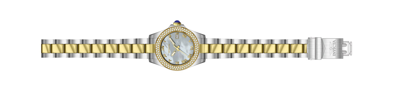 INVICTA Angel Lady 34mm Stainless Steel Gold + Steel Light Blue dial PC32A Quartz , Band Material: Stainless Steel, Band Tone: Steel,Gold, Band Size [mm]: 16, Band Length [mm]: 198, Buckle Type: Fold over safety , Crown Type : Push, Case Material : Stainless Steel, Case Tone : Gold,Steel, Case Size (mm) : 34, Case Back : Solid, Material of Hands : Metal, Color of Hands : Gold,Luminous, Crystal Type : Mineral, Bezel Material : Stainless Steel, Dial Material : Mother of Pearl, Dial Color : Light Blue, Dial Pattern : None .Purchasing these parts and having a non-authorized repair center open your watch voids all manufacturing warranties. Invicta cannot guarantee the quality standards of an altered timepiece, the standard 3-year limited warranty on Invicta timepieces shall be invalid if the timepiece is serviced at any time by an unauthorized repair center. This includes battery replacements, which must be done at an Invicta authorized repair center in order to maintain the eligibility of the warranty. Please follow the link below to learn more about Invicta's warranty.https://cdn.invictawatch.com/www/files/invicta-warranty-2018.pdf