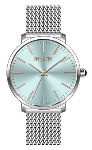 Band Material: Stainless Steel, Band Tone: Steel, Band Width: 18MM, Band Length: 185MM, Crown Type: Push, Case Material: Stainless Steel, Case Tone: Steel, Case Size [mm]: 38, Case Back: Solid, Material of Hands: Brass, Color of Hands: Rose Gold, Crystal Type: Mineral, Bezel Material: None, Dial Material: Brass, Dial Color: Tiffany Blue, Dial Pattern: Sun-ray Finish .Purchasing these parts and having a non-authorized repair center open your watch voids all manufacturing warranties. Invicta cannot guarantee the quality standards of an altered timepiece, the standard 3-year limited warranty on Invicta timepieces shall be invalid if the timepiece is serviced at any time by an unauthorized repair center. This includes battery replacements, which must be done at an Invicta authorized repair center in order to maintain the eligibility of the warranty. Please follow the link below to learn more about Invicta's warranty.https://cdn.invictawatch.com/www/files/invicta-warranty-2018.pdf
