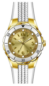 Band Material: Silicone, Band Tone: White, Band Width: 23.5MM, Band Length: 205MM, Crown Type: Push, Case Material: Stainless Steel, Case Tone: Gold, Case Size [mm]: 38, Case Back: Solid, Material of Hands: Brass, Color of Hands: Gold,Luminous, Crystal Type: Mineral, Bezel Material: Stainless Steel,Aluminum, Dial Material: Brass, Dial Color: Gold, Dial Pattern: Sun-ray Finish .Purchasing these parts and having a non-authorized repair center open your watch voids all manufacturing warranties. Invicta cannot guarantee the quality standards of an altered timepiece, the standard 3-year limited warranty on Invicta timepieces shall be invalid if the timepiece is serviced at any time by an unauthorized repair center. This includes battery replacements, which must be done at an Invicta authorized repair center in order to maintain the eligibility of the warranty. Please follow the link below to learn more about Invicta's warranty.https://cdn.invictawatch.com/www/files/invicta-warranty-2018.pdf
