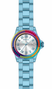 INVICTA Angel Lady 40mm Stainless Steel Iridescent + Ice Blue Silver dial 515 Quartz , Band Material: Stainless Steel, Band Tone: Ice Blue, Band Size [mm]: 20, Band Length [mm]: 200, Buckle Type: Fold over safety , Crown Type : Screw Down, Case Material : Stainless Steel, Case Tone : Iridescent,Ice Blue, Case Size (mm) : 40, Case Back : Solid, Material of Hands : Metal, Color of Hands : Luminous,Light Blue, Crystal Type : Mineral, Bezel Material : Stainless Steel, Dial Material : Metal, Dial Color : Silver, Dial Pattern : Sun-ray Finish .Purchasing these parts and having a non-authorized repair center open your watch voids all manufacturing warranties. Invicta cannot guarantee the quality standards of an altered timepiece, the standard 3-year limited warranty on Invicta timepieces shall be invalid if the timepiece is serviced at any time by an unauthorized repair center. This includes battery replacements, which must be done at an Invicta authorized repair center in order to maintain the eligibility of the warranty. Please follow the link below to learn more about Invicta's warranty.https://cdn.invictawatch.com/www/files/invicta-warranty-2018.pdf