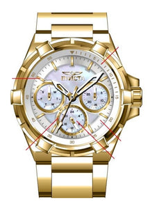INVICTA Aviator Lady 36mm Stainless Steel Gold White+Silver dial VH63 Quartz , Band Material: Stainless Steel, Band Tone: Gold, Band Size [mm]: 22, Band Length [mm]: 290, Buckle Type: Fold over push button , Crown Type : Push, Case Material : Stainless Steel, Case Tone : Gold, Case Size (mm) : 36, Case Back : Solid, Material of Hands : Metal, Color of Hands : Gold, Crystal Type : Flame Fusion, Bezel Material : Stainless Steel, Dial Material : Metal,Mother of Pearl, Dial Color : White,Silver .Purchasing these parts and having a non-authorized repair center open your watch voids all manufacturing warranties. Invicta cannot guarantee the quality standards of an altered timepiece, the standard 3-year limited warranty on Invicta timepieces shall be invalid if the timepiece is serviced at any time by an unauthorized repair center. This includes battery replacements, which must be done at an Invicta authorized repair center in order to maintain the eligibility of the warranty. Please follow the link below to learn more about Invicta's warranty.https://cdn.invictawatch.com/www/files/invicta-warranty-2018.pdf