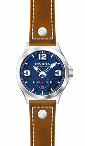 INVICTA Aviator Men 44mm Stainless Steel Steel Blue dial VD78 Quartz , Band Material: Leather, Band Tone: Brown, Band Size [mm]: 22, Band Length [mm]: 215, Buckle Type: Buckle , Crown Type : Push, Case Material : Stainless Steel, Case Tone : Steel, Case Size (mm) : 44, Case Back : Solid, Material of Hands : Metal, Color of Hands : White,Luminous, Crystal Type : Flame Fusion, Bezel Material : None, Dial Material : Metal, Dial Color : Blue .Purchasing these parts and having a non-authorized repair center open your watch voids all manufacturing warranties. Invicta cannot guarantee the quality standards of an altered timepiece, the standard 3-year limited warranty on Invicta timepieces shall be invalid if the timepiece is serviced at any time by an unauthorized repair center. This includes battery replacements, which must be done at an Invicta authorized repair center in order to maintain the eligibility of the warranty. Please follow the link below to learn more about Invicta's warranty.https://cdn.invictawatch.com/www/files/invicta-warranty-2018.pdf