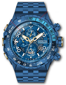 INVICTA Aviator Men 54.5mm Stainless Steel Blue Blue dial VD57 Quartz , Band Material: Stainless Steel, Band Tone: Blue, Band Size [mm]: 56, Band Length [mm]: 190, Buckle Type: Fold over safety , Crown Type : Push, Case Material : Stainless Steel, Case Tone : Blue, Case Size (mm) : 54.5, Case Back : Solid, Material of Hands : Metal, Color of Hands : White,Rose Gold, Crystal Type : Flame Fusion, Bezel Material : Stainless Steel, Dial Material : Metal, Dial Color : Blue .Purchasing these parts and having a non-authorized repair center open your watch voids all manufacturing warranties. Invicta cannot guarantee the quality standards of an altered timepiece, the standard 3-year limited warranty on Invicta timepieces shall be invalid if the timepiece is serviced at any time by an unauthorized repair center. This includes battery replacements, which must be done at an Invicta authorized repair center in order to maintain the eligibility of the warranty. Please follow the link below to learn more about Invicta's warranty.https://cdn.invictawatch.com/www/files/invicta-warranty-2018.pdf
