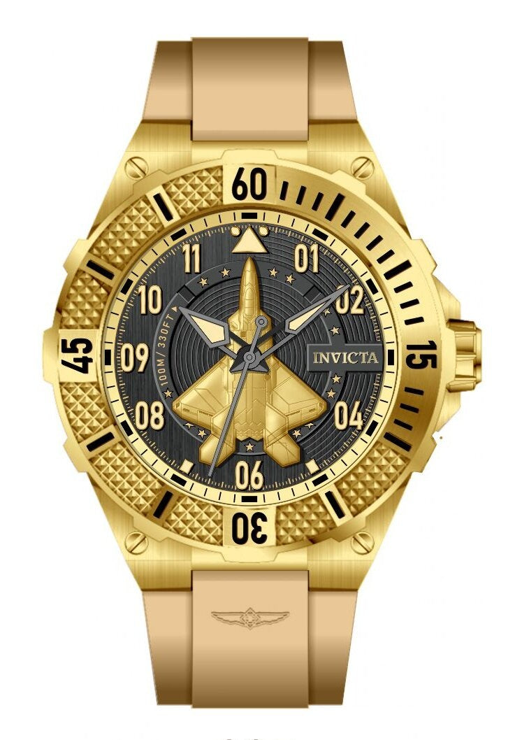 Band Material: Silicone, Band Tone: Beige, Band Width: 26MM, Band Length: 220MM, Crown Type: Push, Case Material: Stainless Steel, Case Tone: Gold, Case Size [mm]: 50, Case Back: Solid, Material of Hands: Metal, Color of Hands: Black,Luminous, Crystal Type: Mineral, Bezel Material: Stainless Steel, Dial Material: Metal, Dial Color: Black, Dial Pattern: Embossed pattern .Purchasing these parts and having a non-authorized repair center open your watch voids all manufacturing warranties. Invicta cannot guarantee the quality standards of an altered timepiece, the standard 3-year limited warranty on Invicta timepieces shall be invalid if the timepiece is serviced at any time by an unauthorized repair center. This includes battery replacements, which must be done at an Invicta authorized repair center in order to maintain the eligibility of the warranty. Please follow the link below to learn more about Invicta's warranty.https://cdn.invictawatch.com/www/files/invicta-warranty-2018.pdf