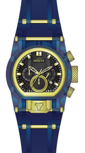 Band Material: Stainless Steel,Silicone, Band Tone: Gold,Blue, Band Width: 34MM, Band Length: 210MM, Crown Type: Screw Down,Push, Case Material: Stainless Steel,Plastic, Case Tone: Gold,Blue, Case Size [mm]: 52.0, Case Back: Solid, Material of Hands: Metal, Color of Hands: Gold,Luminous, Crystal Type: Flame Fusion, Bezel Material: Stainless Steel, Dial Material: Metal, Dial Color: Black,Gold, Dial Pattern: Textured Pattern .Purchasing these parts and having a non-authorized repair center open your watch voids all manufacturing warranties. Invicta cannot guarantee the quality standards of an altered timepiece, the standard 3-year limited warranty on Invicta timepieces shall be invalid if the timepiece is serviced at any time by an unauthorized repair center. This includes battery replacements, which must be done at an Invicta authorized repair center in order to maintain the eligibility of the warranty. Please follow the link below to learn more about Invicta's warranty.https://cdn.invictawatch.com/www/files/invicta-warranty-2018.pdf