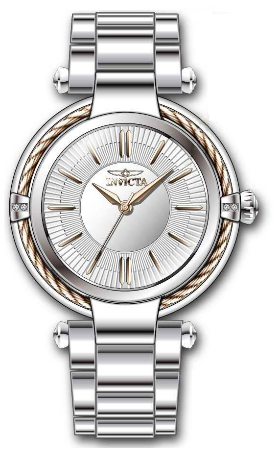 INVICTA Bolt Lady 40mm Stainless Steel Steel Silver dial PC21 Quartz , Band Material: Stainless Steel, Band Tone: Steel, Band Size [mm]: 20, Band Length [mm]: 175, Buckle Type: Fold over push button , Crown Type : Push, Case Material : Stainless Steel, Case Tone : Steel, Case Size (mm) : 40, Case Back : Solid, Material of Hands : Metal, Color of Hands : Rose Gold, Crystal Type : Flame Fusion, Bezel Material : Stainless Steel, Dial Material : Metal, Dial Color : Silver .Purchasing these parts and having a non-authorized repair center open your watch voids all manufacturing warranties. Invicta cannot guarantee the quality standards of an altered timepiece, the standard 3-year limited warranty on Invicta timepieces shall be invalid if the timepiece is serviced at any time by an unauthorized repair center. This includes battery replacements, which must be done at an Invicta authorized repair center in order to maintain the eligibility of the warranty. Please follow the link below to learn more about Invicta's warranty.https://cdn.invictawatch.com/www/files/invicta-warranty-2018.pdf