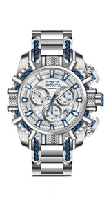 INVICTA Bolt Men 56.5mm Stainless Steel Steel Silver dial Z60 FE Quartz , Band Material: Stainless Steel,Cable, Band Tone: Steel,Blue, Band Size [mm]: 26, Band Length [mm]: 210, Buckle Type: Fold over safety , Crown Type : Push, Case Material : Stainless Steel, Case Tone : Steel, Case Size (mm) : 56.5, Case Back : Solid, Material of Hands : Metal, Color of Hands : Silver,Blue, Crystal Type : Flame Fusion, Bezel Material : Stainless Steel,Cable, Dial Material : Metal, Dial Color : Silver .Purchasing these parts and having a non-authorized repair center open your watch voids all manufacturing warranties. Invicta cannot guarantee the quality standards of an altered timepiece, the standard 3-year limited warranty on Invicta timepieces shall be invalid if the timepiece is serviced at any time by an unauthorized repair center. This includes battery replacements, which must be done at an Invicta authorized repair center in order to maintain the eligibility of the warranty. Please follow the link below to learn more about Invicta's warranty.https://cdn.invictawatch.com/www/files/invicta-warranty-2018.pdf