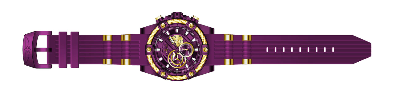 INVICTA Bolt Men 52mm Stainless Steel Purple Purple dial VD54 Quartz , Band Material: Stainless Steel,Silicone, Band Tone: Gold,Purple, Band Size [mm]: 26, Band Length [mm]: 185, Buckle Type: Buckle , Crown Type : Push, Case Material : Stainless Steel, Case Tone : Purple, Case Size (mm) : 52, Case Back : Solid, Material of Hands : Metal, Color of Hands : White,Gold,Purple, Crystal Type : Flame Fusion, Bezel Material : Stainless Steel,Cable, Dial Material : Metal, Dial Color : Purple, Dial Pattern : Sun-ray Finish .Purchasing these parts and having a non-authorized repair center open your watch voids all manufacturing warranties. Invicta cannot guarantee the quality standards of an altered timepiece, the standard 3-year limited warranty on Invicta timepieces shall be invalid if the timepiece is serviced at any time by an unauthorized repair center. This includes battery replacements, which must be done at an Invicta authorized repair center in order to maintain the eligibility of the warranty. Please follow the link below to learn more about Invicta's warranty.https://cdn.invictawatch.com/www/files/invicta-warranty-2018.pdf