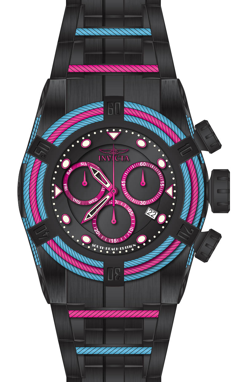 Band Material: Stainless Steel, Band Tone: Black,Blue,Hot Pink, Band Width: 35.00MM, Band Length: 210MM, Crown Type: Screw Down, Case Material: Stainless Steel, Case Tone: Black,Blue,Hot Pink, Case Size [mm]: 53, Case Back: Solid, Material of Hands: Metal, Color of Hands: Luminous,Hot Pink, Crystal Type: Mineral, Bezel Material: Stainless Steel, Dial Material: Metal, Dial Color: Black, Dial Pattern: Glossy Finish .Purchasing these parts and having a non-authorized repair center open your watch voids all manufacturing warranties. Invicta cannot guarantee the quality standards of an altered timepiece, the standard 3-year limited warranty on Invicta timepieces shall be invalid if the timepiece is serviced at any time by an unauthorized repair center. This includes battery replacements, which must be done at an Invicta authorized repair center in order to maintain the eligibility of the warranty. Please follow the link below to learn more about Invicta's warranty.https://cdn.invictawatch.com/www/files/invicta-warranty-2018.pdf