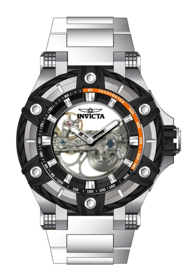 Band Material: Stainless Steel, Band Tone: Steel, Band Width: 30MM, Band Length: 176MM, Crown Type: Screw Down, Case Material: Stainless Steel, Case Tone: Steel, Case Size [mm]: 52, Case Back: Exhibition, Material of Hands: Brass, Color of Hands: Silver,Luminous, Crystal Type: Mineral, Bezel Material: Stainless Steel,Cable, Dial Material: Plastic, Dial Color: Black, Dial Pattern: Matte Finish .Purchasing these parts and having a non-authorized repair center open your watch voids all manufacturing warranties. Invicta cannot guarantee the quality standards of an altered timepiece, the standard 3-year limited warranty on Invicta timepieces shall be invalid if the timepiece is serviced at any time by an unauthorized repair center. This includes battery replacements, which must be done at an Invicta authorized repair center in order to maintain the eligibility of the warranty. Please follow the link below to learn more about Invicta's warranty.https://cdn.invictawatch.com/www/files/invicta-warranty-2018.pdf
