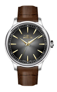 Band Material: Leather, Band Tone: Brown, Band Width: 20MM, Band Length: 210MM, Crown Type: Push, Case Material: Stainless Steel, Case Tone: Steel, Case Size [mm]: 43, Case Back: Solid, Material of Hands: Brass, Color of Hands: Gold, Crystal Type: Mineral, Bezel Material: None, Dial Material: Brass, Dial Color: Black,Grey,Gradient, Dial Pattern: Sun-ray Finish .Purchasing these parts and having a non-authorized repair center open your watch voids all manufacturing warranties. Invicta cannot guarantee the quality standards of an altered timepiece, the standard 3-year limited warranty on Invicta timepieces shall be invalid if the timepiece is serviced at any time by an unauthorized repair center. This includes battery replacements, which must be done at an Invicta authorized repair center in order to maintain the eligibility of the warranty. Please follow the link below to learn more about Invicta's warranty.https://cdn.invictawatch.com/www/files/invicta-warranty-2018.pdf