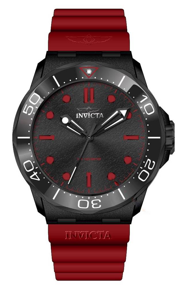 Band Material: Silicone, Band Tone: Red, Band Width: 24MM, Band Length: 215MM, Crown Type: Push, Case Material: ABS, Case Tone: Black, Case Size [mm]: 45, Case Back: Solid, Material of Hands: Metal, Color of Hands: Black, Crystal Type: Flame Fusion, Bezel Material: Aluminum,ABS, Dial Material: Metal, Dial Color: Black, Dial Pattern: Sandblast Finish .Purchasing these parts and having a non-authorized repair center open your watch voids all manufacturing warranties. Invicta cannot guarantee the quality standards of an altered timepiece, the standard 3-year limited warranty on Invicta timepieces shall be invalid if the timepiece is serviced at any time by an unauthorized repair center. This includes battery replacements, which must be done at an Invicta authorized repair center in order to maintain the eligibility of the warranty. Please follow the link below to learn more about Invicta's warranty.https://cdn.invictawatch.com/www/files/invicta-warranty-2018.pdf
