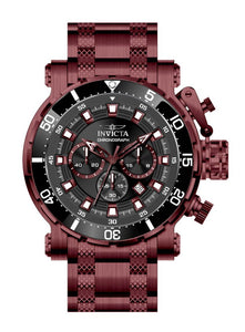 Band Material: Stainless Steel, Band Tone: Burgundy, Band Width: 26MM, Band Length: 198MM, Crown Type: Push, Case Material: Stainless Steel, Case Tone: Burgundy, Case Size [mm]: 52, Case Back: Solid, Material of Hands: Brass, Color of Hands: Luminous,Burgundy, Crystal Type: Flame Fusion, Bezel Material: Stainless Steel,Aluminum, Dial Material: Metal, Dial Color: Black, Dial Pattern: Sun-ray Finish .Purchasing these parts and having a non-authorized repair center open your watch voids all manufacturing warranties. Invicta cannot guarantee the quality standards of an altered timepiece, the standard 3-year limited warranty on Invicta timepieces shall be invalid if the timepiece is serviced at any time by an unauthorized repair center. This includes battery replacements, which must be done at an Invicta authorized repair center in order to maintain the eligibility of the warranty. Please follow the link below to learn more about Invicta's warranty.https://cdn.invictawatch.com/www/files/invicta-warranty-2018.pdf