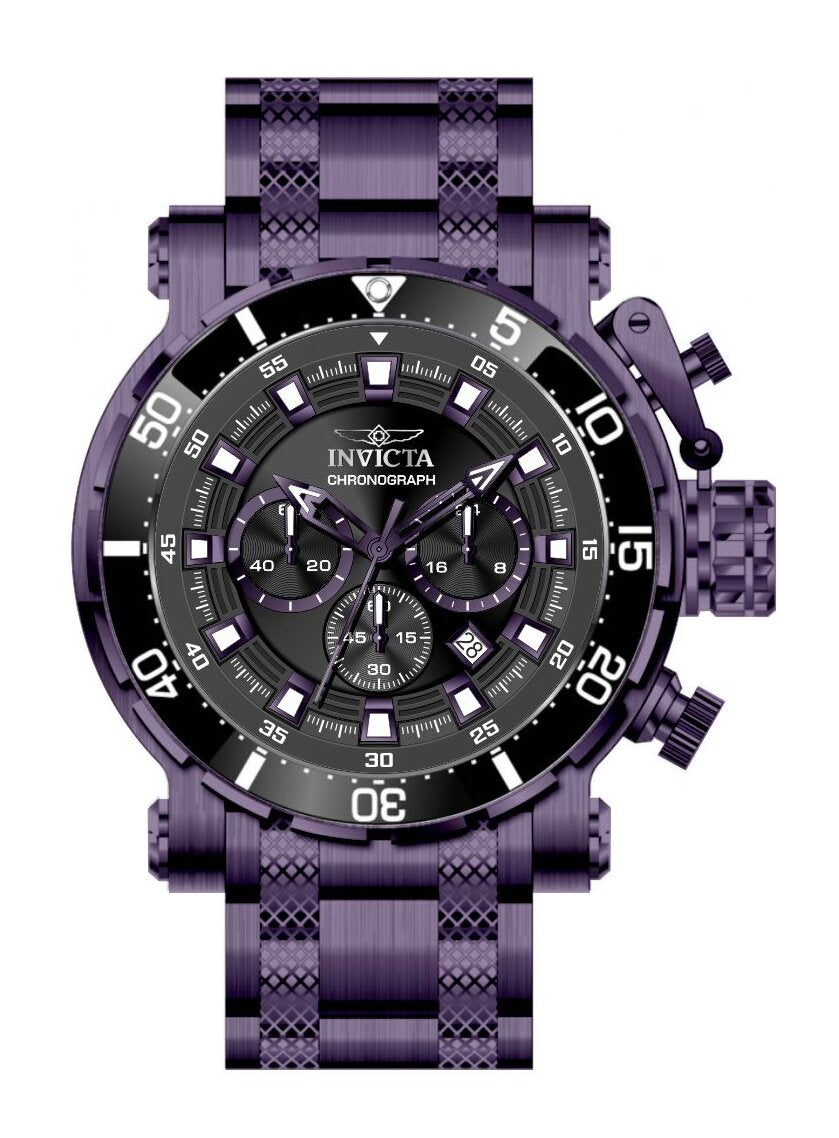 Band Material: Stainless Steel, Band Tone: Purple, Band Width: 26MM, Band Length: 198MM, Crown Type: Push, Case Material: Stainless Steel, Case Tone: Purple, Case Size [mm]: 52, Case Back: Solid, Material of Hands: Brass, Color of Hands: Purple,Luminous, Crystal Type: Flame Fusion, Bezel Material: Stainless Steel,Aluminum, Dial Material: Metal, Dial Color: Black, Dial Pattern: Sun-ray Finish .Purchasing these parts and having a non-authorized repair center open your watch voids all manufacturing warranties. Invicta cannot guarantee the quality standards of an altered timepiece, the standard 3-year limited warranty on Invicta timepieces shall be invalid if the timepiece is serviced at any time by an unauthorized repair center. This includes battery replacements, which must be done at an Invicta authorized repair center in order to maintain the eligibility of the warranty. Please follow the link below to learn more about Invicta's warranty.https://cdn.invictawatch.com/www/files/invicta-warranty-2018.pdf