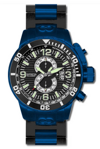 INVICTA Corduba Men 52mm Stainless Steel Blue Black dial VD51 Quartz , Band Material: Stainless Steel,Polyurethane, Band Tone: Black,Blue, Band Size [mm]: 28, Band Length [mm]: 230, Buckle Type: Butterfly , Crown Type : Screw Down, Case Material : Stainless Steel, Case Tone : Blue, Case Size (mm) : 52, Case Back : Solid, Material of Hands : Metal, Color of Hands : Silver, Crystal Type : Flame Fusion, Bezel Material : Stainless Steel, Dial Material : Metal, Dial Color : Black, Dial Pattern : None .Purchasing these parts and having a non-authorized repair center open your watch voids all manufacturing warranties. Invicta cannot guarantee the quality standards of an altered timepiece, the standard 3-year limited warranty on Invicta timepieces shall be invalid if the timepiece is serviced at any time by an unauthorized repair center. This includes battery replacements, which must be done at an Invicta authorized repair center in order to maintain the eligibility of the warranty. Please follow the link below to learn more about Invicta's warranty.https://cdn.invictawatch.com/www/files/invicta-warranty-2018.pdf