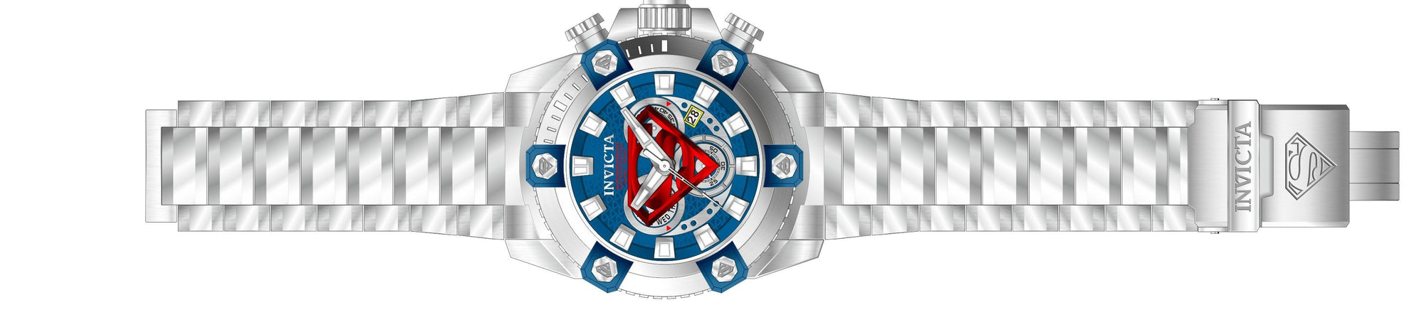 Individual Spare PARTS For Invicta DC Comics 26909, Band Material: Stainless Steel, Band Tone: Steel, Band Size (mm): 31, Band Length (mm): 230, Buckle Type: Diver, Clasp Type: Deployment, Safety, Crown Type Push, Case Material Stainless Steel, Case Tone Steel, Case Size (mm) 56, Case Back Solid, Material of Hands Metal, Color of Hands Silver, Luminous, Crystal Type Flame Fusion, Bezel Material Stainless Steel, Dial Material Metal, Dial Color Blue, Dial Pattern NonePurchasing these parts and having a non-authorized repair center open your watch voids all manufacturing warranties. Invicta cannot guarantee the quality standards of an altered timepiece, the standard 3-year limited warranty on Invicta timepieces shall be invalid if the timepiece is serviced at any time by an unauthorized repair center. This includes battery replacements, which must be done at an Invicta authorized repair center in order to maintain the eligibility of the warranty. Please follow the link below to learn more about Invicta's warranty.https://cdn.invictawatch.com/www/files/invicta-warranty-2018.pdf