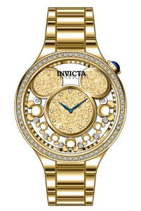 INVICTA Disney Limited Edition Lady 35mm Stainless Steel Gold Gold dial PC10 Quartz , Band Material: Stainless Steel, Band Tone: Gold, Band Size [mm]: 16, Band Length [mm]: 175, Buckle Type: Fold over push button , Crown Type : Push, Case Material : Stainless Steel, Case Tone : Gold, Case Size (mm) : 35, Case Back : Solid, Material of Hands : Metal, Color of Hands : Blue, Crystal Type : Flame Fusion, Bezel Material : Stainless Steel, Dial Material : Metal, Dial Color : Gold .Purchasing these parts and having a non-authorized repair center open your watch voids all manufacturing warranties. Invicta cannot guarantee the quality standards of an altered timepiece, the standard 3-year limited warranty on Invicta timepieces shall be invalid if the timepiece is serviced at any time by an unauthorized repair center. This includes battery replacements, which must be done at an Invicta authorized repair center in order to maintain the eligibility of the warranty. Please follow the link below to learn more about Invicta's warranty.https://cdn.invictawatch.com/www/files/invicta-warranty-2018.pdf