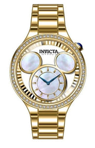INVICTA Disney Limited Edition Lady 35mm Stainless Steel Gold White dial PC10 Quartz , Band Material: Stainless Steel, Band Tone: Gold, Band Size [mm]: 16, Band Length [mm]: 175, Buckle Type: Fold over push button , Crown Type : Push, Case Material : Stainless Steel, Case Tone : Gold, Case Size (mm) : 35, Case Back : Solid, Material of Hands : Metal, Color of Hands : Blue, Crystal Type : Flame Fusion, Bezel Material : Stainless Steel, Dial Material : Metal,Mother of Pearl, Dial Color : White .Purchasing these parts and having a non-authorized repair center open your watch voids all manufacturing warranties. Invicta cannot guarantee the quality standards of an altered timepiece, the standard 3-year limited warranty on Invicta timepieces shall be invalid if the timepiece is serviced at any time by an unauthorized repair center. This includes battery replacements, which must be done at an Invicta authorized repair center in order to maintain the eligibility of the warranty. Please follow the link below to learn more about Invicta's warranty.https://cdn.invictawatch.com/www/files/invicta-warranty-2018.pdf