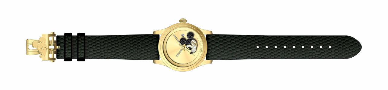 INVICTA Disney Limited Edition Lady 38mm Stainless Steel Gold Gold dial 2115 Quartz , Band Material: Leather, Band Tone: Black, Band Size [mm]: 20, Band Length [mm]: 210, Buckle Type: Butterfly push button , Crown Type : Push, Case Material : Stainless Steel, Case Tone : Gold, Case Size (mm) : 38, Case Back : Solid, Material of Hands : Metal, Color of Hands : Gold, Crystal Type : Flame Fusion, Bezel Material : Stainless Steel, Dial Material : Metal, Dial Color : Gold, Dial Pattern : Sun-ray Finish .Purchasing these parts and having a non-authorized repair center open your watch voids all manufacturing warranties. Invicta cannot guarantee the quality standards of an altered timepiece, the standard 3-year limited warranty on Invicta timepieces shall be invalid if the timepiece is serviced at any time by an unauthorized repair center. This includes battery replacements, which must be done at an Invicta authorized repair center in order to maintain the eligibility of the warranty. Please follow the link below to learn more about Invicta's warranty.https://cdn.invictawatch.com/www/files/invicta-warranty-2018.pdf