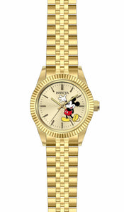 INVICTA Disney Limited Edition Lady 36mm Stainless Steel Gold Gold dial PC21J Quartz , Band Material: Stainless Steel, Band Tone: Gold, Band Size [mm]: 18, Band Length [mm]: 200, Buckle Type: Fold over , Crown Type : Push, Case Material : Stainless Steel, Case Tone : Gold, Case Size (mm) : 36, Case Back : Solid, Material of Hands : Metal, Color of Hands : Gold,Luminous, Crystal Type : Mineral, Bezel Material : Stainless Steel, Dial Material : Metal, Dial Color : Gold, Dial Pattern : Sun-ray Finish .Purchasing these parts and having a non-authorized repair center open your watch voids all manufacturing warranties. Invicta cannot guarantee the quality standards of an altered timepiece, the standard 3-year limited warranty on Invicta timepieces shall be invalid if the timepiece is serviced at any time by an unauthorized repair center. This includes battery replacements, which must be done at an Invicta authorized repair center in order to maintain the eligibility of the warranty. Please follow the link below to learn more about Invicta's warranty.https://cdn.invictawatch.com/www/files/invicta-warranty-2018.pdf