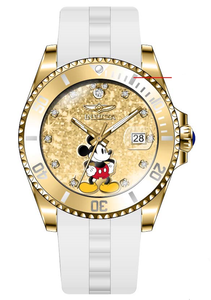 INVICTA Disney Limited Edition Lady 38mm Stainless Steel Gold Gold dial PC32 Quartz , Band Material: Silicone, Band Tone: White, Band Size [mm]: 20, Band Length [mm]: 200, Buckle Type: Buckle , Crown Type : Push, Case Material : Stainless Steel, Case Tone : Gold, Case Size (mm) : 38, Case Back : Solid, Material of Hands : Metal, Color of Hands : White,Gold, Crystal Type : Flame Fusion, Bezel Material : Stainless Steel, Dial Material : Glitter, Dial Color : Gold .Purchasing these parts and having a non-authorized repair center open your watch voids all manufacturing warranties. Invicta cannot guarantee the quality standards of an altered timepiece, the standard 3-year limited warranty on Invicta timepieces shall be invalid if the timepiece is serviced at any time by an unauthorized repair center. This includes battery replacements, which must be done at an Invicta authorized repair center in order to maintain the eligibility of the warranty. Please follow the link below to learn more about Invicta's warranty.https://cdn.invictawatch.com/www/files/invicta-warranty-2018.pdf