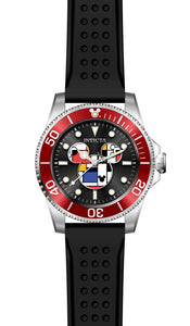 INVICTA Disney Limited Edition Men 44mm Stainless Steel Steel Black dial PC21J Quartz , Band Material: Silicone, Band Tone: Black,Red, Band Size [mm]: 22, Band Length [mm]: 195, Buckle Type: Buckle , Crown Type : Push, Case Material : Stainless Steel, Case Tone : Steel, Case Size (mm) : 44, Case Back : Solid, Material of Hands : Metal, Color of Hands : Silver,Luminous, Crystal Type : Mineral, Bezel Material : Stainless Steel, Dial Material : Metal, Dial Color : Black, Dial Pattern : Sun-ray Finish .Purchasing these parts and having a non-authorized repair center open your watch voids all manufacturing warranties. Invicta cannot guarantee the quality standards of an altered timepiece, the standard 3-year limited warranty on Invicta timepieces shall be invalid if the timepiece is serviced at any time by an unauthorized repair center. This includes battery replacements, which must be done at an Invicta authorized repair center in order to maintain the eligibility of the warranty. Please follow the link below to learn more about Invicta's warranty.https://cdn.invictawatch.com/www/files/invicta-warranty-2018.pdf
