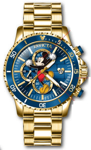 INVICTA Disney Limited Edition Men 48mm Stainless Steel Gold Blue dial VD53 Quartz , Band Material: Stainless Steel, Band Tone: Gold, Band Size [mm]: 24, Band Length [mm]: 210, Buckle Type: Fold over safety , Crown Type : Push, Case Material : Stainless Steel, Case Tone : Gold, Case Size (mm) : 48, Case Back : Solid, Material of Hands : Metal, Color of Hands : Gold, Crystal Type : Flame Fusion, Bezel Material : Stainless Steel, Dial Material : Metal, Dial Color : Blue, Dial Pattern : None .Purchasing these parts and having a non-authorized repair center open your watch voids all manufacturing warranties. Invicta cannot guarantee the quality standards of an altered timepiece, the standard 3-year limited warranty on Invicta timepieces shall be invalid if the timepiece is serviced at any time by an unauthorized repair center. This includes battery replacements, which must be done at an Invicta authorized repair center in order to maintain the eligibility of the warranty. Please follow the link below to learn more about Invicta's warranty.https://cdn.invictawatch.com/www/files/invicta-warranty-2018.pdf