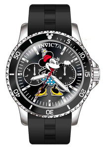 INVICTA Disney Limited Edition Lady 40mm Stainless Steel Steel Silver dial VH64 Quartz , Band Material: Silicone, Band Tone: Black, Band Size [mm]: 20, Band Length [mm]: 210, Buckle Type: Buckle , Crown Type : Push, Case Material : Stainless Steel, Case Tone : Steel, Case Size (mm) : 40, Case Back : Solid, Material of Hands : Metal, Color of Hands : Silver,Red, Crystal Type : Flame Fusion, Bezel Material : Stainless Steel,Aluminum, Dial Material : Metal, Dial Color : Silver .Purchasing these parts and having a non-authorized repair center open your watch voids all manufacturing warranties. Invicta cannot guarantee the quality standards of an altered timepiece, the standard 3-year limited warranty on Invicta timepieces shall be invalid if the timepiece is serviced at any time by an unauthorized repair center. This includes battery replacements, which must be done at an Invicta authorized repair center in order to maintain the eligibility of the warranty. Please follow the link below to learn more about Invicta's warranty.https://cdn.invictawatch.com/www/files/invicta-warranty-2018.pdf