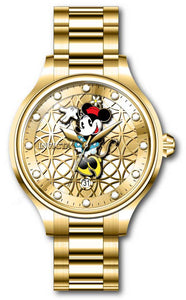INVICTA Disney Limited Edition Lady 38mm Stainless Steel Gold Gold dial PC32 Quartz , Band Material: Stainless Steel, Band Tone: Gold, Band Size [mm]: 16, Band Length [mm]: 175, Buckle Type: Fold over push button , Crown Type : Push, Case Material : Stainless Steel, Case Tone : Gold, Case Size (mm) : 38, Case Back : Solid, Material of Hands : Metal, Color of Hands : Gold, Crystal Type : Flame Fusion, Bezel Material : Stainless Steel, Dial Material : Mother of Pearl, Dial Color : Gold .Purchasing these parts and having a non-authorized repair center open your watch voids all manufacturing warranties. Invicta cannot guarantee the quality standards of an altered timepiece, the standard 3-year limited warranty on Invicta timepieces shall be invalid if the timepiece is serviced at any time by an unauthorized repair center. This includes battery replacements, which must be done at an Invicta authorized repair center in order to maintain the eligibility of the warranty. Please follow the link below to learn more about Invicta's warranty.https://cdn.invictawatch.com/www/files/invicta-warranty-2018.pdf