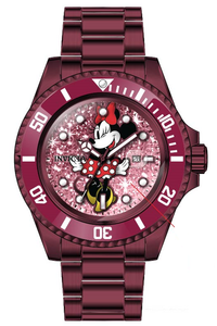 INVICTA Disney Limited Edition Lady 36mm Stainless Steel Red Red dial PC22A Quartz , Band Material: Stainless Steel, Band Tone: Red, Band Size [mm]: 17, Band Length [mm]: 175, Buckle Type: Fold over safety , Crown Type : Push, Case Material : Stainless Steel, Case Tone : Red, Case Size (mm) : 36, Case Back : Solid, Material of Hands : Metal, Color of Hands : White,Red, Crystal Type : Flame Fusion, Bezel Material : Stainless Steel,Aluminum, Dial Material : Glitter, Dial Color : Red .Purchasing these parts and having a non-authorized repair center open your watch voids all manufacturing warranties. Invicta cannot guarantee the quality standards of an altered timepiece, the standard 3-year limited warranty on Invicta timepieces shall be invalid if the timepiece is serviced at any time by an unauthorized repair center. This includes battery replacements, which must be done at an Invicta authorized repair center in order to maintain the eligibility of the warranty. Please follow the link below to learn more about Invicta's warranty.https://cdn.invictawatch.com/www/files/invicta-warranty-2018.pdf