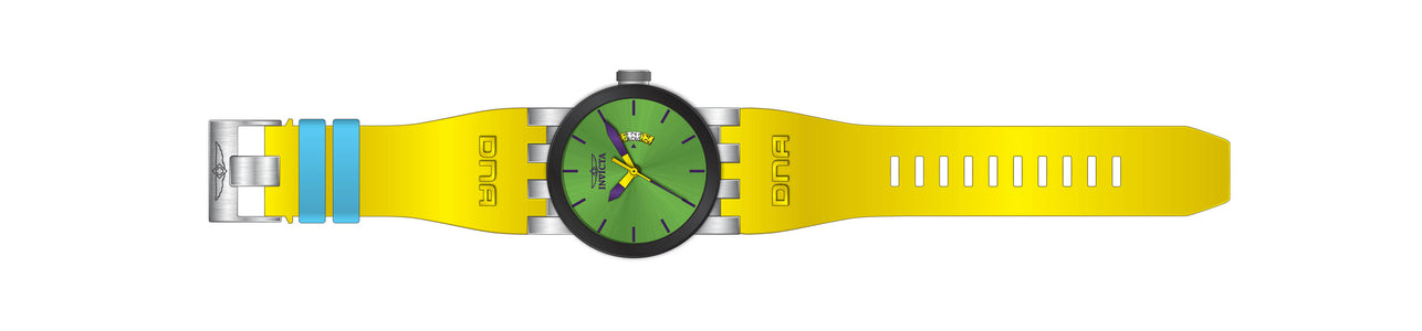 INVICTA DNA Men 46mm Stainless Steel Black + Steel Green+Purple dial PC32 Quartz , Band Material: Silicone, Band Tone: Yellow,Light Blue, Band Size [mm]: 33.5, Band Length [mm]: 210, Buckle Type: Buckle , Crown Type : Push, Case Material : Stainless Steel, Case Tone : Black,Steel, Case Size (mm) : 46, Case Back : Solid, Material of Hands : Metal, Color of Hands : Yellow,Purple, Crystal Type : Mineral, Bezel Material : Stainless Steel, Dial Material : Metal, Dial Color : Green,Purple .Purchasing these parts and having a non-authorized repair center open your watch voids all manufacturing warranties. Invicta cannot guarantee the quality standards of an altered timepiece, the standard 3-year limited warranty on Invicta timepieces shall be invalid if the timepiece is serviced at any time by an unauthorized repair center. This includes battery replacements, which must be done at an Invicta authorized repair center in order to maintain the eligibility of the warranty. Please follow the link below to learn more about Invicta's warranty.https://cdn.invictawatch.com/www/files/invicta-warranty-2018.pdf