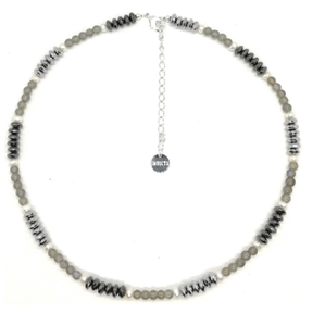 Invicta Elements WOMEN 16" + 3" EXTENSION HEMATITE BLACK+SILVER+LABRADORITE+PEARL 6mm hematite, 4mm pearl, 4.5mm labradorite