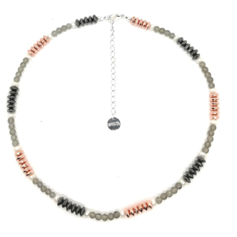 Invicta Elements WOMEN 16" + 3" EXTENSION HEMATITE BLACK+SILVER+LABRADORITE+PEARL 6mm hematite, 4mm pearl, 4.5mm labradorite