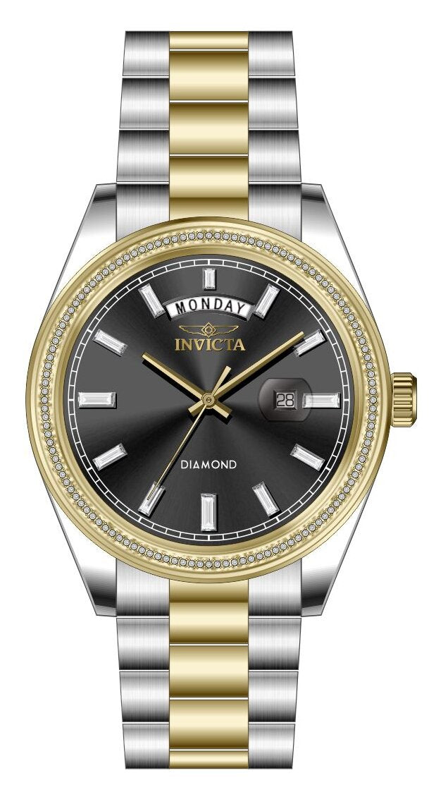 Band Material: Stainless Steel, Band Tone: Steel,Gold, Band Width: 22MM, Band Length: 185MM, Crown Type: Push, Case Material: Stainless Steel, Case Tone: Gold,Steel, Case Size [mm]: 44, Case Back: Solid, Material of Hands: Brass, Color of Hands: Gold, Crystal Type: Mineral, Bezel Material: Stainless Steel,Diamond, Dial Material: Brass, Dial Color: Black, Dial Pattern: Sun-ray Finish .Purchasing these parts and having a non-authorized repair center open your watch voids all manufacturing warranties. Invicta cannot guarantee the quality standards of an altered timepiece, the standard 3-year limited warranty on Invicta timepieces shall be invalid if the timepiece is serviced at any time by an unauthorized repair center. This includes battery replacements, which must be done at an Invicta authorized repair center in order to maintain the eligibility of the warranty. Please follow the link below to learn more about Invicta's warranty.https://cdn.invictawatch.com/www/files/invicta-warranty-2018.pdf