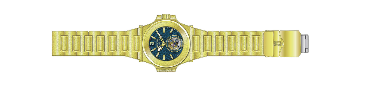 INVICTA JT Men 55mm Stainless Steel Gold + Sandblast Blue dial TY800 Mechanical , Band Material: Stainless Steel, Band Tone: Gold,Shot-blast, Band Size [mm]: 30.5, Band Length [mm]: 210, Buckle Type: Fold over safety , Crown Type : Screw Down, Case Material : Stainless Steel, Case Tone : Gold,Sandblast, Case Size (mm) : 55, Case Back : Exhibition, Material of Hands : Metal, Color of Hands : Gold,Luminous,Gunmetal, Crystal Type : Flame Fusion, Bezel Material : Stainless Steel, Dial Material : Metal, Dial Color : Blue, Dial Pattern : Textured Pattern .Purchasing these parts and having a non-authorized repair center open your watch voids all manufacturing warranties. Invicta cannot guarantee the quality standards of an altered timepiece, the standard 3-year limited warranty on Invicta timepieces shall be invalid if the timepiece is serviced at any time by an unauthorized repair center. This includes battery replacements, which must be done at an Invicta authorized repair center in order to maintain the eligibility of the warranty. Please follow the link below to learn more about Invicta's warranty.https://cdn.invictawatch.com/www/files/invicta-warranty-2018.pdf