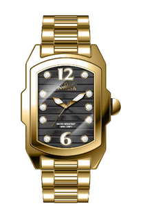 INVICTA Lupah Lady 29mm Stainless Steel Gold Black dial PC21 Quartz , Band Material: Stainless Steel, Band Tone: Gold, Band Size [mm]: 16, Band Length [mm]: 175, Buckle Type: Fold over push button , Crown Type : Push, Case Material : Stainless Steel, Case Tone : Gold, Case Size (mm) : 29, Case Back : Solid, Material of Hands : Metal, Color of Hands : White,Gold, Crystal Type : Flame Fusion, Bezel Material : Stainless Steel, Dial Material : Metal, Dial Color : Black .Purchasing these parts and having a non-authorized repair center open your watch voids all manufacturing warranties. Invicta cannot guarantee the quality standards of an altered timepiece, the standard 3-year limited warranty on Invicta timepieces shall be invalid if the timepiece is serviced at any time by an unauthorized repair center. This includes battery replacements, which must be done at an Invicta authorized repair center in order to maintain the eligibility of the warranty. Please follow the link below to learn more about Invicta's warranty.https://cdn.invictawatch.com/www/files/invicta-warranty-2018.pdf
