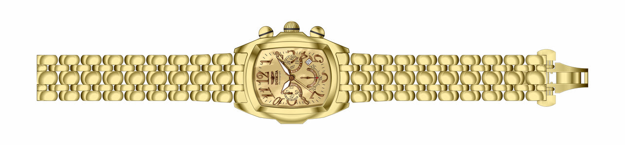 INVICTA Lupah Men 44.5mm Stainless Steel Gold Gold dial VD53 Quartz , Band Material: Stainless Steel, Band Tone: Gold, Band Size [mm]: 24, Band Length [mm]: 215, Buckle Type: Butterfly push button , Crown Type : Push, Case Material : Stainless Steel, Case Tone : Gold, Case Size (mm) : 44.5, Case Back : Solid, Material of Hands : Metal, Color of Hands : Brown,Luminous, Crystal Type : Flame Fusion, Bezel Material : Stainless Steel, Dial Material : Mother of Pearl, Dial Color : Gold, Dial Pattern : None .Purchasing these parts and having a non-authorized repair center open your watch voids all manufacturing warranties. Invicta cannot guarantee the quality standards of an altered timepiece, the standard 3-year limited warranty on Invicta timepieces shall be invalid if the timepiece is serviced at any time by an unauthorized repair center. This includes battery replacements, which must be done at an Invicta authorized repair center in order to maintain the eligibility of the warranty. Please follow the link below to learn more about Invicta's warranty.https://cdn.invictawatch.com/www/files/invicta-warranty-2018.pdf