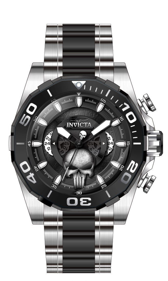 Band Material: Stainless Steel, Band Tone: Black, Steel, Band Width: 24MM, Band Length: 179MM, Crown Type: Push, Case Material: Stainless Steel, Case Tone: Steel, Case Size [mm]: 48, Color of Hands: Black, Crystal Type: Flame Fusion, Bezel Material: Stainless Steel, Dial Material: Metal, Dial Color: Black .Purchasing these parts and having a non-authorized repair center open your watch voids all manufacturing warranties. Invicta cannot guarantee the quality standards of an altered timepiece, the standard 3-year limited warranty on Invicta timepieces shall be invalid if the timepiece is serviced at any time by an unauthorized repair center. This includes battery replacements, which must be done at an Invicta authorized repair center in order to maintain the eligibility of the warranty. Please follow the link below to learn more about Invicta's warranty.https://cdn.invictawatch.com/www/files/invicta-warranty-2018.pdf