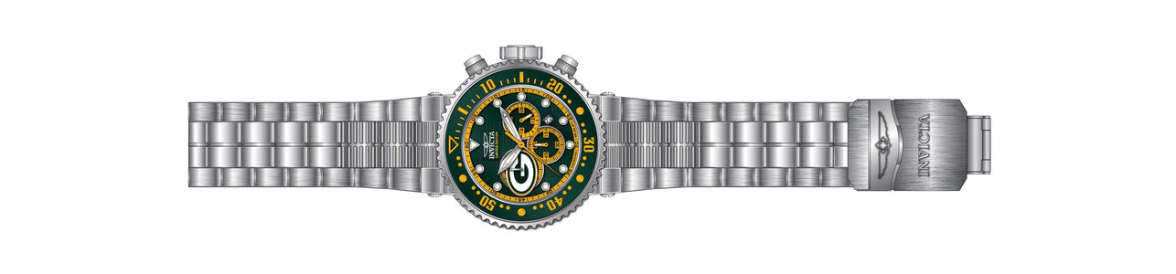 Band Material: Stainless Steel, Band Tone: Steel, Band Width: 29.8MM, Band Length: 210MM, Crown Type: Screw Down, Case Material: Aluminum, Stainless Steel, Case Tone: Steel, Green, Yellow, Case Size [mm]: 52, Color of Hands: Steel, Luminous, Yellow, Crystal Type: Mineral, Bezel Material: Aluminum, Stainless Steel, Dial Material: Metal, Dial Color: Green, Yellow, White .Purchasing these parts and having a non-authorized repair center open your watch voids all manufacturing warranties. Invicta cannot guarantee the quality standards of an altered timepiece, the standard 3-year limited warranty on Invicta timepieces shall be invalid if the timepiece is serviced at any time by an unauthorized repair center. This includes battery replacements, which must be done at an Invicta authorized repair center in order to maintain the eligibility of the warranty. Please follow the link below to learn more about Invicta's warranty.https://cdn.invictawatch.com/www/files/invicta-warranty-2018.pdf