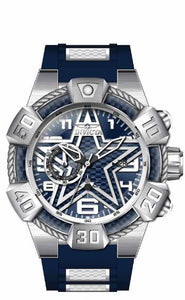 Band Material: Glass Fiber, Silicone, Band Tone: White, Blue, Band Width: 30MM, Band Length: 210MM, Crown Type: Push, Case Material: Stainless Steel, Case Tone: Silver, Case Size [mm]: 52, Color of Hands: Silver, Crystal Type: Flame Fusion, Bezel Material: Cable, Stainless Steel, Dial Material: Glass Fiber, Metal, Dial Color: Blue .Purchasing these parts and having a non-authorized repair center open your watch voids all manufacturing warranties. Invicta cannot guarantee the quality standards of an altered timepiece, the standard 3-year limited warranty on Invicta timepieces shall be invalid if the timepiece is serviced at any time by an unauthorized repair center. This includes battery replacements, which must be done at an Invicta authorized repair center in order to maintain the eligibility of the warranty. Please follow the link below to learn more about Invicta's warranty.https://cdn.invictawatch.com/www/files/invicta-warranty-2018.pdf