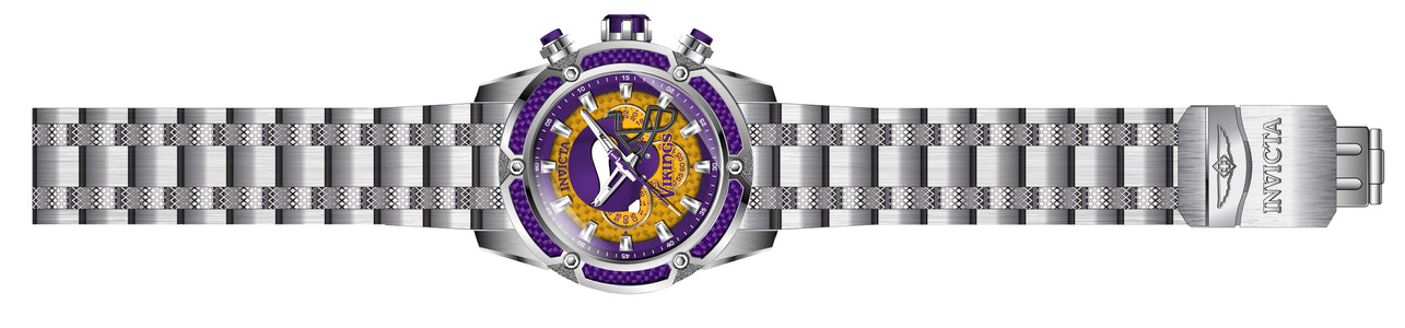 Band Material: Stainless Steel, Band Tone: Steel, Band Width: 26MM, Band Length: 198MM, Crown Type: Push, Case Material: Stainless Steel, Case Tone: Silver, Case Size [mm]: 52, Color of Hands: Purple, Silver, White, Crystal Type: Flame Fusion, Bezel Material: Glass Fiber, Stainless Steel, Dial Material: Glass Fiber, Metal, Dial Color: Purple, Yellow, White .Purchasing these parts and having a non-authorized repair center open your watch voids all manufacturing warranties. Invicta cannot guarantee the quality standards of an altered timepiece, the standard 3-year limited warranty on Invicta timepieces shall be invalid if the timepiece is serviced at any time by an unauthorized repair center. This includes battery replacements, which must be done at an Invicta authorized repair center in order to maintain the eligibility of the warranty. Please follow the link below to learn more about Invicta's warranty.https://cdn.invictawatch.com/www/files/invicta-warranty-2018.pdf