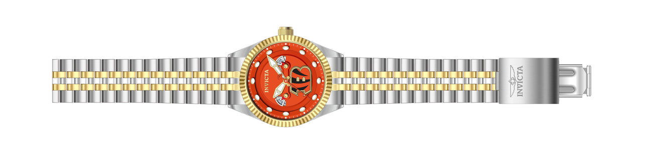 Band Material: Stainless Steel, Band Tone: Gold, Steel, Band Width: 22MM, Band Length: 205MM, Crown Type: Push, Case Material: Stainless Steel, Case Tone: Steel, Gold, Case Size [mm]: 43, Color of Hands: Luminous, Gold, Crystal Type: Mineral, Bezel Material: Stainless Steel, Dial Material: Metal, Dial Color: Orange .Purchasing these parts and having a non-authorized repair center open your watch voids all manufacturing warranties. Invicta cannot guarantee the quality standards of an altered timepiece, the standard 3-year limited warranty on Invicta timepieces shall be invalid if the timepiece is serviced at any time by an unauthorized repair center. This includes battery replacements, which must be done at an Invicta authorized repair center in order to maintain the eligibility of the warranty. Please follow the link below to learn more about Invicta's warranty.https://cdn.invictawatch.com/www/files/invicta-warranty-2018.pdf