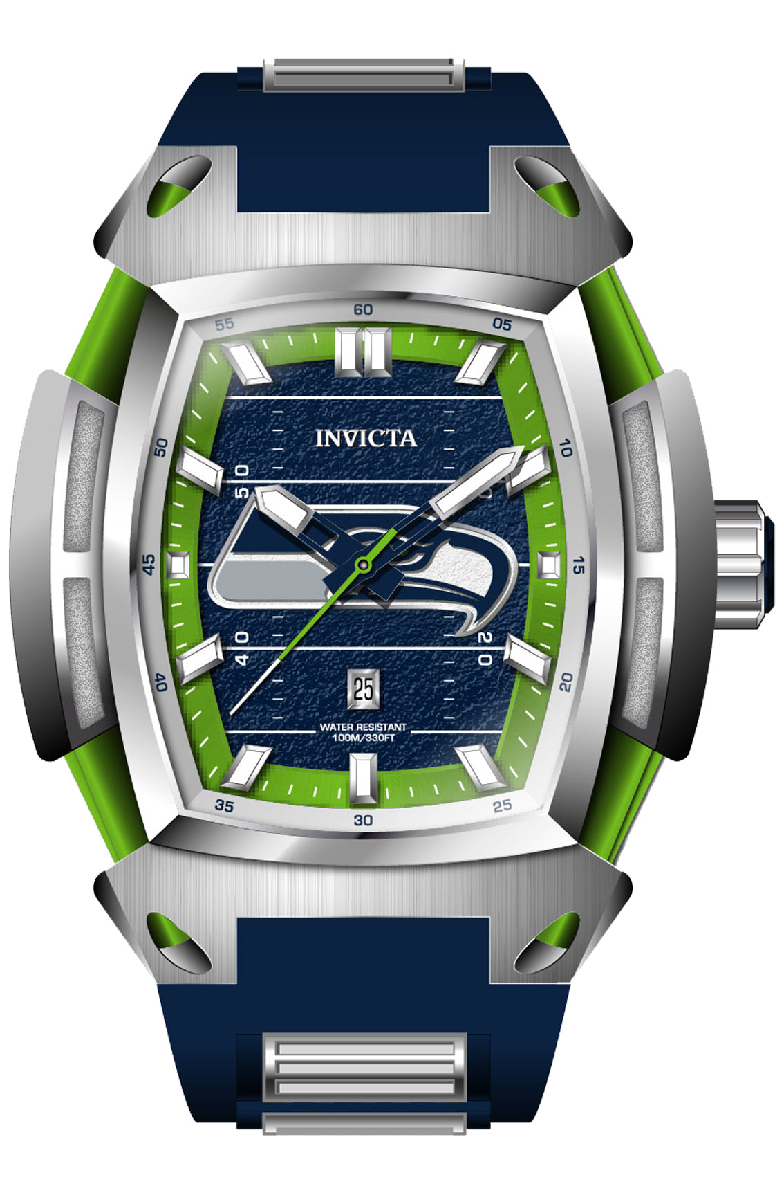 Band Material: Silicone, Stainless Steel, Band Tone: Blue, Steel, Band Width: 31MM, Band Length: 210MM, Crown Type: Push, Case Material: Aluminum, Stainless Steel, Case Tone: Silver, Green, Case Size [mm]: 53, Color of Hands: Green, Blue, Silver, White, Crystal Type: Flame Fusion, Bezel Material: Stainless Steel, Dial Material: Metal, Dial Color: Green, Silver, White, Blue .Purchasing these parts and having a non-authorized repair center open your watch voids all manufacturing warranties. Invicta cannot guarantee the quality standards of an altered timepiece, the standard 3-year limited warranty on Invicta timepieces shall be invalid if the timepiece is serviced at any time by an unauthorized repair center. This includes battery replacements, which must be done at an Invicta authorized repair center in order to maintain the eligibility of the warranty. Please follow the link below to learn more about Invicta's warranty.https://cdn.invictawatch.com/www/files/invicta-warranty-2018.pdf