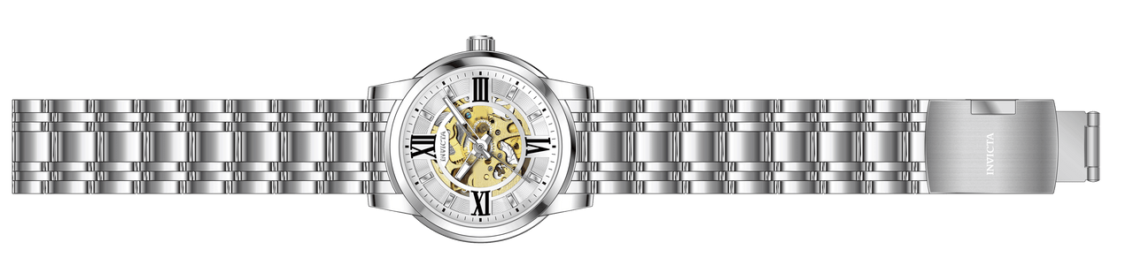 Band Material: Stainless Steel, Band Tone: Silver, Band Width: 20MM, Band Length: 170MM, Crown Type: Screw Down, Case Material: Stainless Steel, Case Tone: Silver,Steel, Case Size [mm]: 41, Case Back: Exhibition screwed, Crystal Type: Flame Fusion, Dial Material: Plastic, Dial Color: Silver .Purchasing these parts and having a non-authorized repair center open your watch voids all manufacturing warranties. Invicta cannot guarantee the quality standards of an altered timepiece, the standard 3-year limited warranty on Invicta timepieces shall be invalid if the timepiece is serviced at any time by an unauthorized repair center. This includes battery replacements, which must be done at an Invicta authorized repair center in order to maintain the eligibility of the warranty. Please follow the link below to learn more about Invicta's warranty.https://cdn.invictawatch.com/www/files/invicta-warranty-2018.pdf