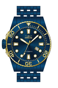 INVICTA Pro Diver Men 50.7mm Stainless Steel + Aluminum Gold + Dark Blue Blue dial NH35A Automatic , Band Material: Stainless Steel, Band Tone: Dark Blue, Band Size [mm]: 26, Band Length [mm]: 210, Buckle Type: Fold over safety , Crown Type : Push, Case Material : Stainless Steel,Aluminum, Case Tone : Gold,Dark Blue, Case Size (mm) : 50.7, Case Back : Exhibition, Material of Hands : Metal, Color of Hands : Gold,Luminous, Crystal Type : Mineral, Bezel Material : Stainless Steel,Aluminum, Dial Material : Metal, Dial Color : Blue, Dial Pattern : Sun-ray Finish .Purchasing these parts and having a non-authorized repair center open your watch voids all manufacturing warranties. Invicta cannot guarantee the quality standards of an altered timepiece, the standard 3-year limited warranty on Invicta timepieces shall be invalid if the timepiece is serviced at any time by an unauthorized repair center. This includes battery replacements, which must be done at an Invicta authorized repair center in order to maintain the eligibility of the warranty. Please follow the link below to learn more about Invicta's warranty.https://cdn.invictawatch.com/www/files/invicta-warranty-2018.pdf