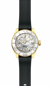INVICTA Pro Diver Lady 38mm Stainless Steel Gold Rhodium dial NH35A Automatic , Band Material: Silicone, Band Tone: Black, Band Size [mm]: 18, Band Length [mm]: 215, Buckle Type: Buckle , Crown Type : Screw Down, Case Material : Stainless Steel, Case Tone : Gold, Case Size (mm) : 38, Case Back : Exhibition, Material of Hands : Metal, Color of Hands : Gold,Luminous, Crystal Type : Sapphire, Bezel Material : Stainless Steel, Dial Material : Meteorite, Dial Color : Rhodium, Dial Pattern : None .Purchasing these parts and having a non-authorized repair center open your watch voids all manufacturing warranties. Invicta cannot guarantee the quality standards of an altered timepiece, the standard 3-year limited warranty on Invicta timepieces shall be invalid if the timepiece is serviced at any time by an unauthorized repair center. This includes battery replacements, which must be done at an Invicta authorized repair center in order to maintain the eligibility of the warranty. Please follow the link below to learn more about Invicta's warranty.https://cdn.invictawatch.com/www/files/invicta-warranty-2018.pdf