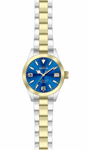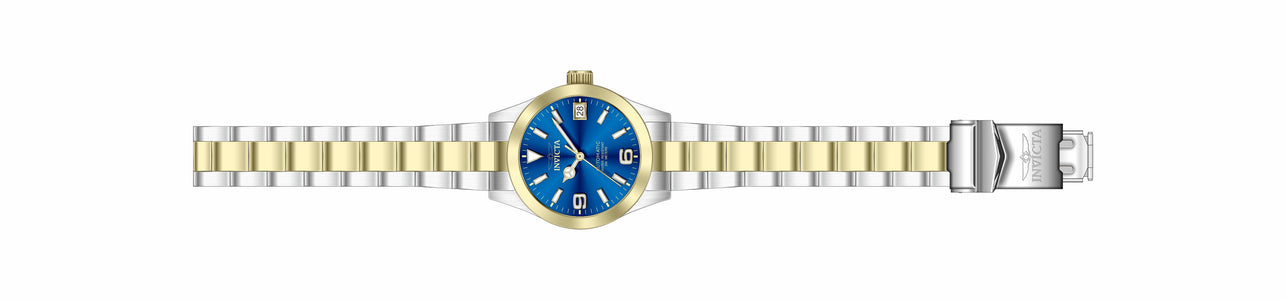 INVICTA Pro Diver Lady 34mm Stainless Steel Gold + Steel Blue dial NH35A Automatic , Band Material: Stainless Steel, Band Tone: Steel,Gold, Band Size [mm]: 16, Band Length [mm]: 195, Buckle Type: Fold over safety , Crown Type : Push, Case Material : Stainless Steel, Case Tone : Gold,Steel, Case Size (mm) : 34, Case Back : Exhibition, Material of Hands : Metal, Color of Hands : Gold,Luminous, Crystal Type : Flame Fusion, Bezel Material : Stainless Steel, Dial Material : Metal, Dial Color : Blue, Dial Pattern : Sun-ray Finish .Purchasing these parts and having a non-authorized repair center open your watch voids all manufacturing warranties. Invicta cannot guarantee the quality standards of an altered timepiece, the standard 3-year limited warranty on Invicta timepieces shall be invalid if the timepiece is serviced at any time by an unauthorized repair center. This includes battery replacements, which must be done at an Invicta authorized repair center in order to maintain the eligibility of the warranty. Please follow the link below to learn more about Invicta's warranty.https://cdn.invictawatch.com/www/files/invicta-warranty-2018.pdf